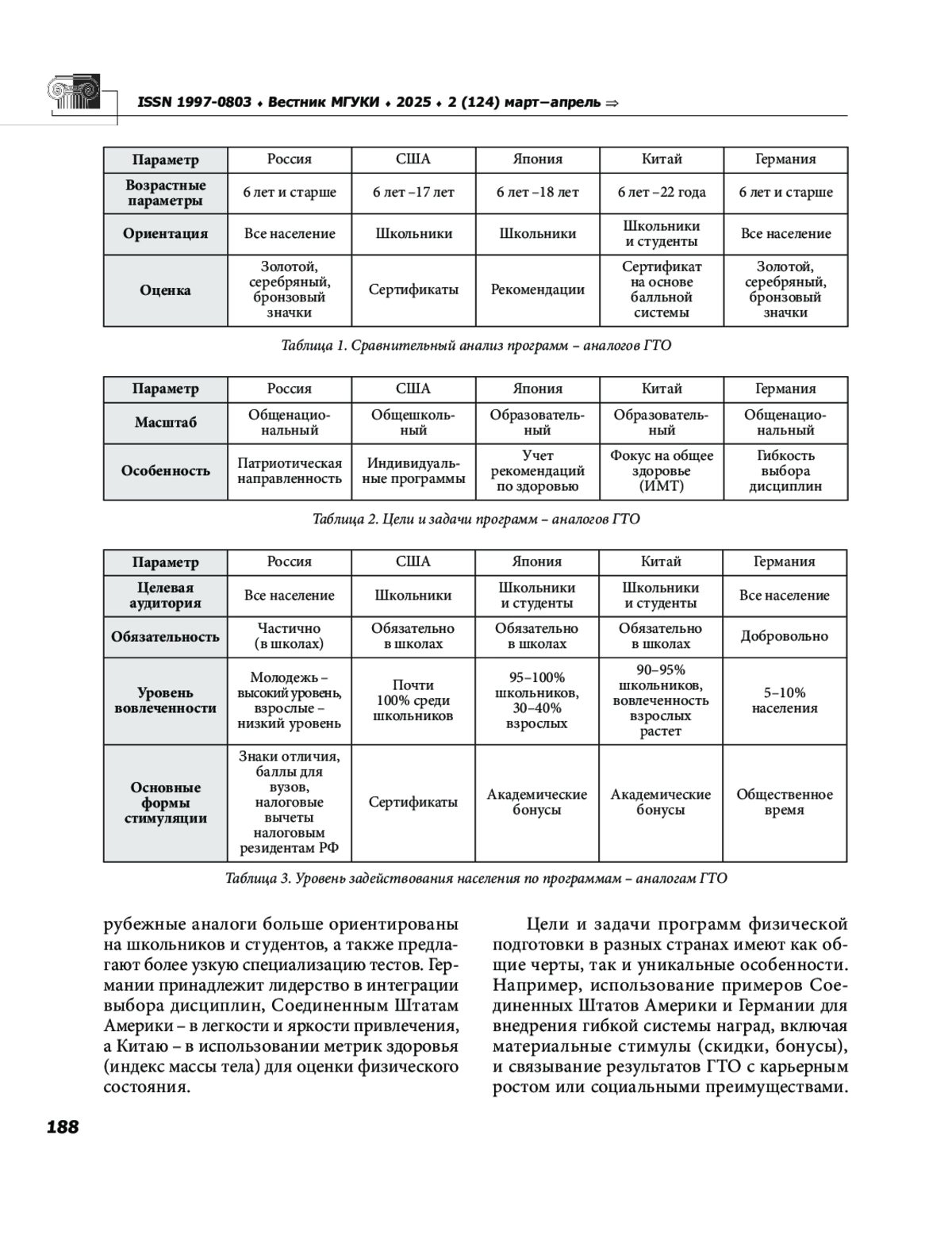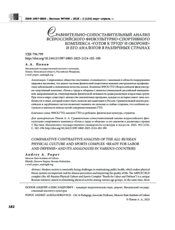 Современное общество постоянно сталкивается с вызовами в области поддержания здоровья населения, что делает системы физической подготовки важным инструментом профилактики заболеваний и повышения качества жизни. Комплекс ВФСК ГТО (Всероссийский физкультурно спортивный комплекс «Готов к труду и обороне») является уникальной российской инициативой, направленной на стимулирование физической активности среди различных возрастных групп. При этом в мире существует множество аналогичных программ, каждая из которых имеет свои особенности и опыт, который может быть полезен для адаптации в России. Сравнительный анализ российских и зарубежных систем позволяет выявить их сильные и слабые стороны, что особенно актуально в контексте поиска путей совершенствования ГТО.