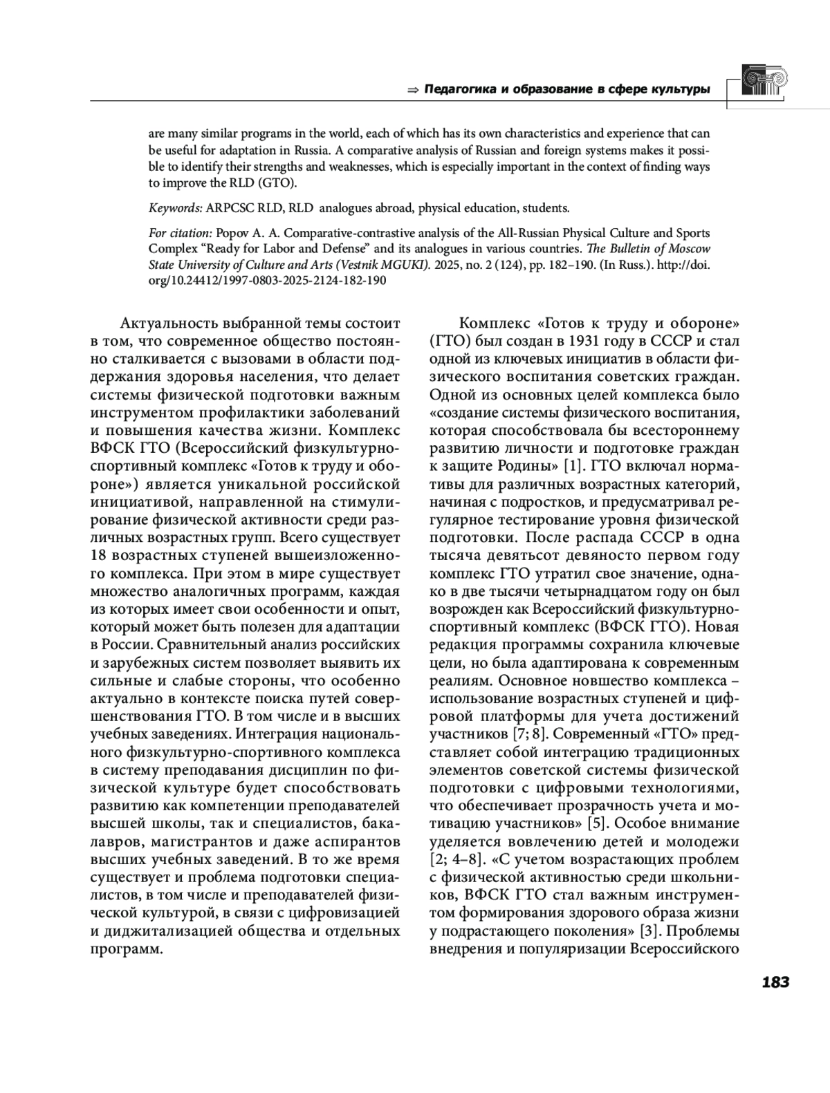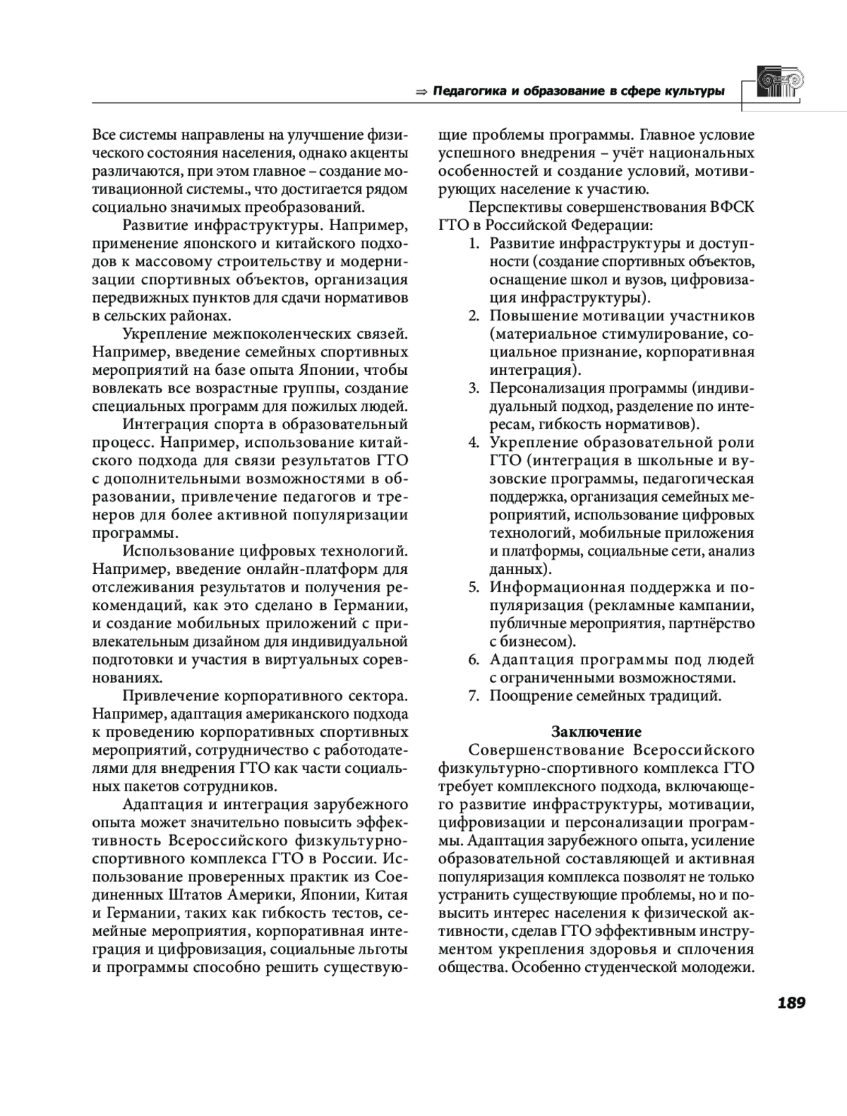 5. Михайлов А. В. Социальные аспекты внедрения ГТО в России // Вопросы физкультуры. 2023. № 1. С. 18.