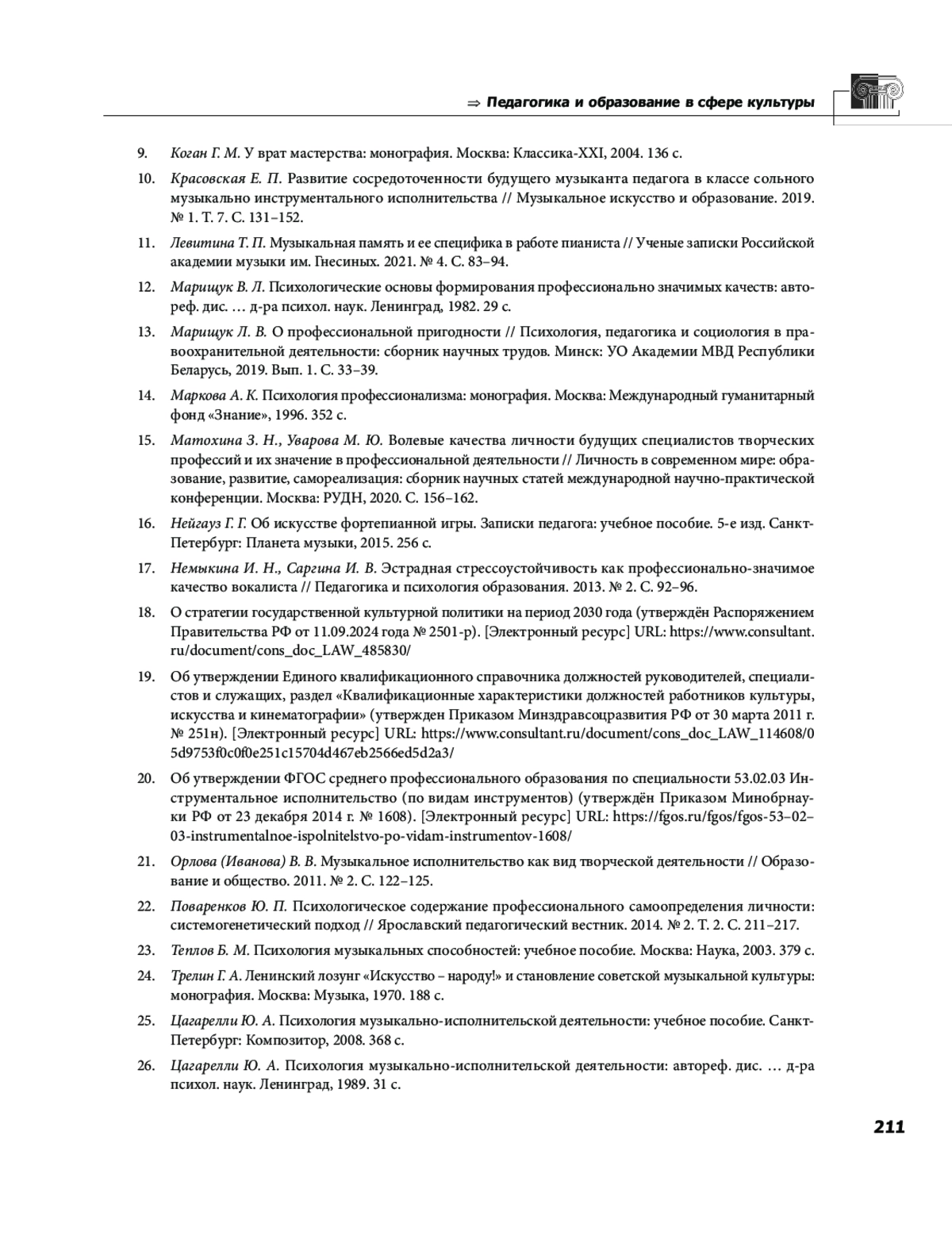 9. Коган Г. М. У врат мастерства: монография. Москва: Классика-XXI, 2004. 136 с. EDN: QXOWKJ