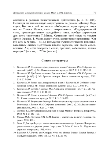 10. Blackmur R.P. Parody and Critique: Notes on Thomas Mann’s Doctor Faustus // The Kenyon Review, 1950. Vol. 12. No. 1. P. 20-40.