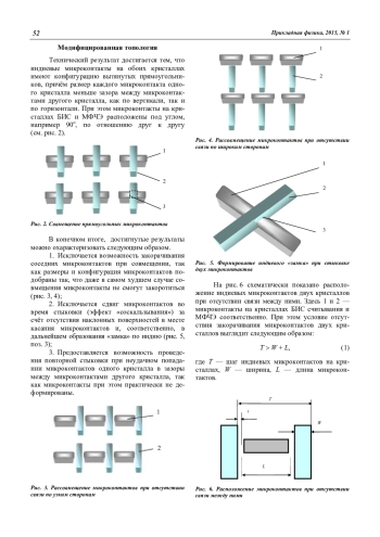 Для гибридизации кристаллов БИС считывания и МФЧЭ методом перевернутого монтажа обычно используются микроконтакты квадратной или круглой формы. При небольшой погрешности совмещения кристаллов возможно закорачивание микроконтактов одного кристалла микроконтактами другого кристалла. В работе показано, что использование для гибридизации микроконтактов прямоугольной формы позволяет исключить возможность появления подобных закороток при сохранении механической прочности соединения.