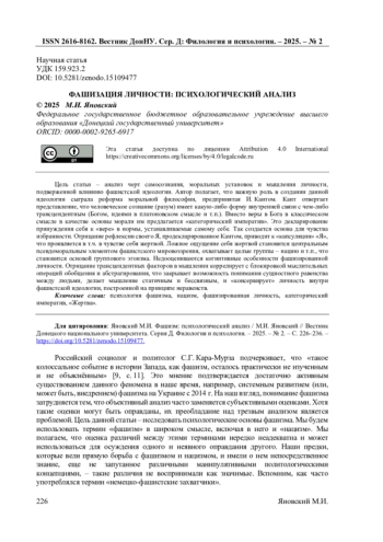 14. Ситнова И.В. Наследие фашизма: западный психологический дискурс ХХ в. / И.В. Ситнова // Власть. - 2015. - № 4. - С. 93-98. EDN: TPHVJD
