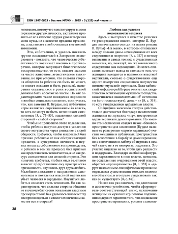 8. Бурдье П. Мужское господство// Бурдье П Социальное пространство. Поля и практики. Москва: Институт экспериментальной социологии; Санкт-Петербург: Алетейя, 2005. C. 286-364. EDN: TDSDVZ