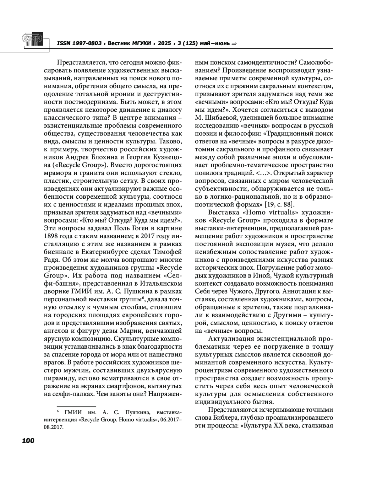 17. Ступин С. С. Искусство как репрезентация экзистенциального: автореф. дисс. … доктора искусствоведения. Саранск, 2024. 34 с. EDN: FLZFNL
