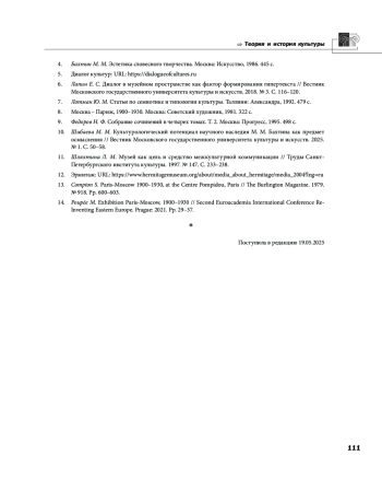 11. Шляхтина Л. М. Музей как цель и средство межкультурной коммуникации // Труды Санкт-Петербургского института культуры. 1997. № 147. С. 233-238.