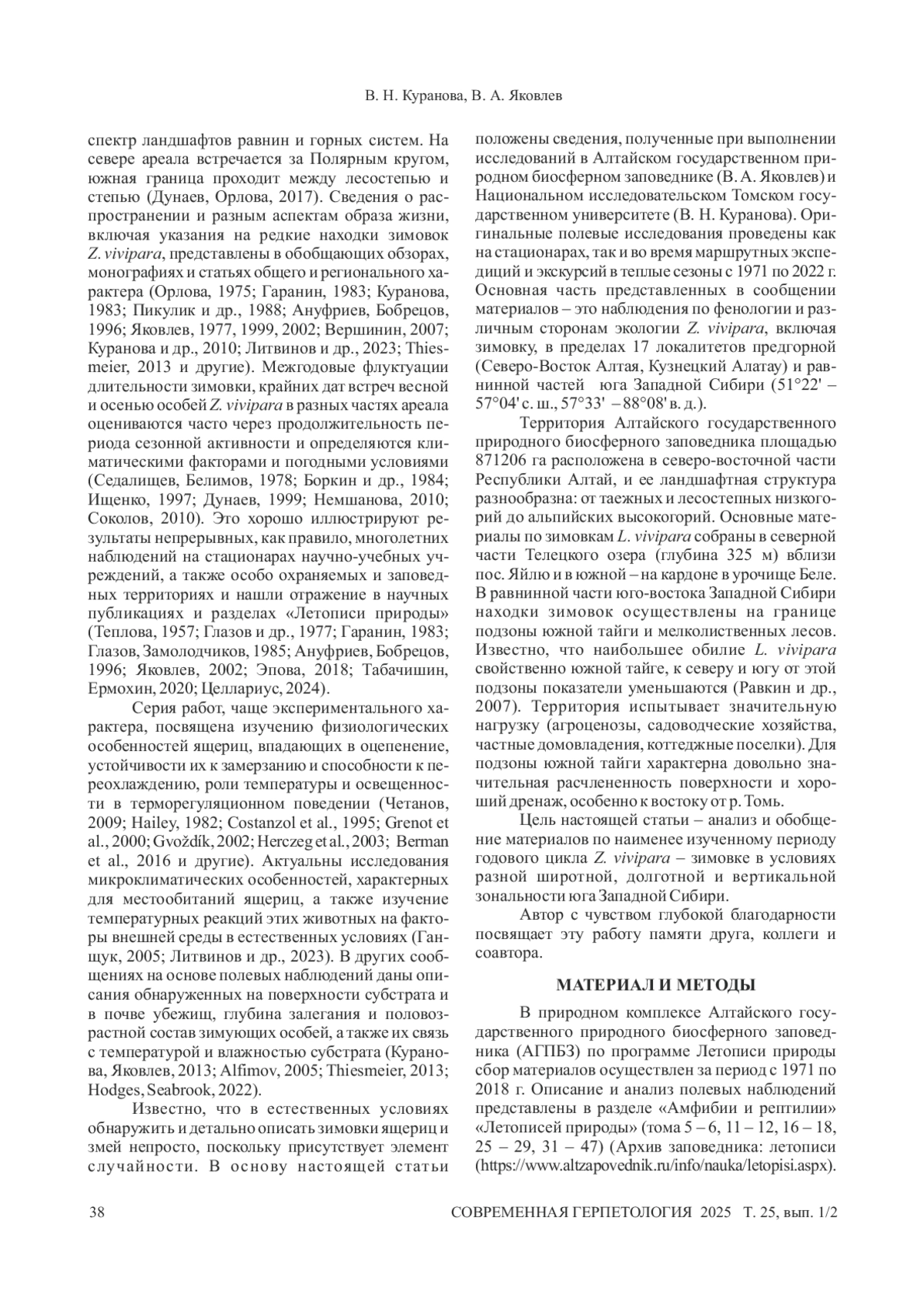 19. Куранова В. Н., Яковлев В. А. 2013. Некоторые аспекты гибернации живородящей ящерицы Lacerta vivipara // Фундаментальные и прикладные исследования и образовательные традиции в зоологии: материалы Международной научной конференции. Томск: Издательский Дом Томского государственного университета. С. 68.