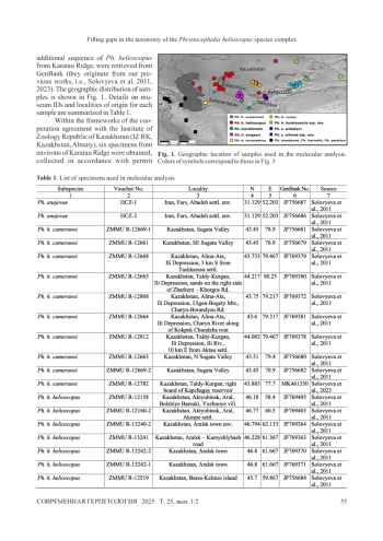 28. Wu N., Wang S., Dujsebayeva T. N., Chen D., Ali A., Guo X. Geography and past climate changes have shaped the evolution of a widespread lizard in arid Central Asia. Molecular Phylogenetics and Evolution, 2023, vol. 184, article no. 107781.