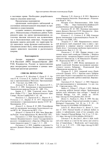 19. Bonnet X., Naulleau G., Shine R. 1999. The dangers of leaving home: Dispersal and mortality in snakes // Biological Conservation. Vol. 89, iss. 1. P. 39 - 50. DOI: 10.1016/S0006-3207(98)00140-2