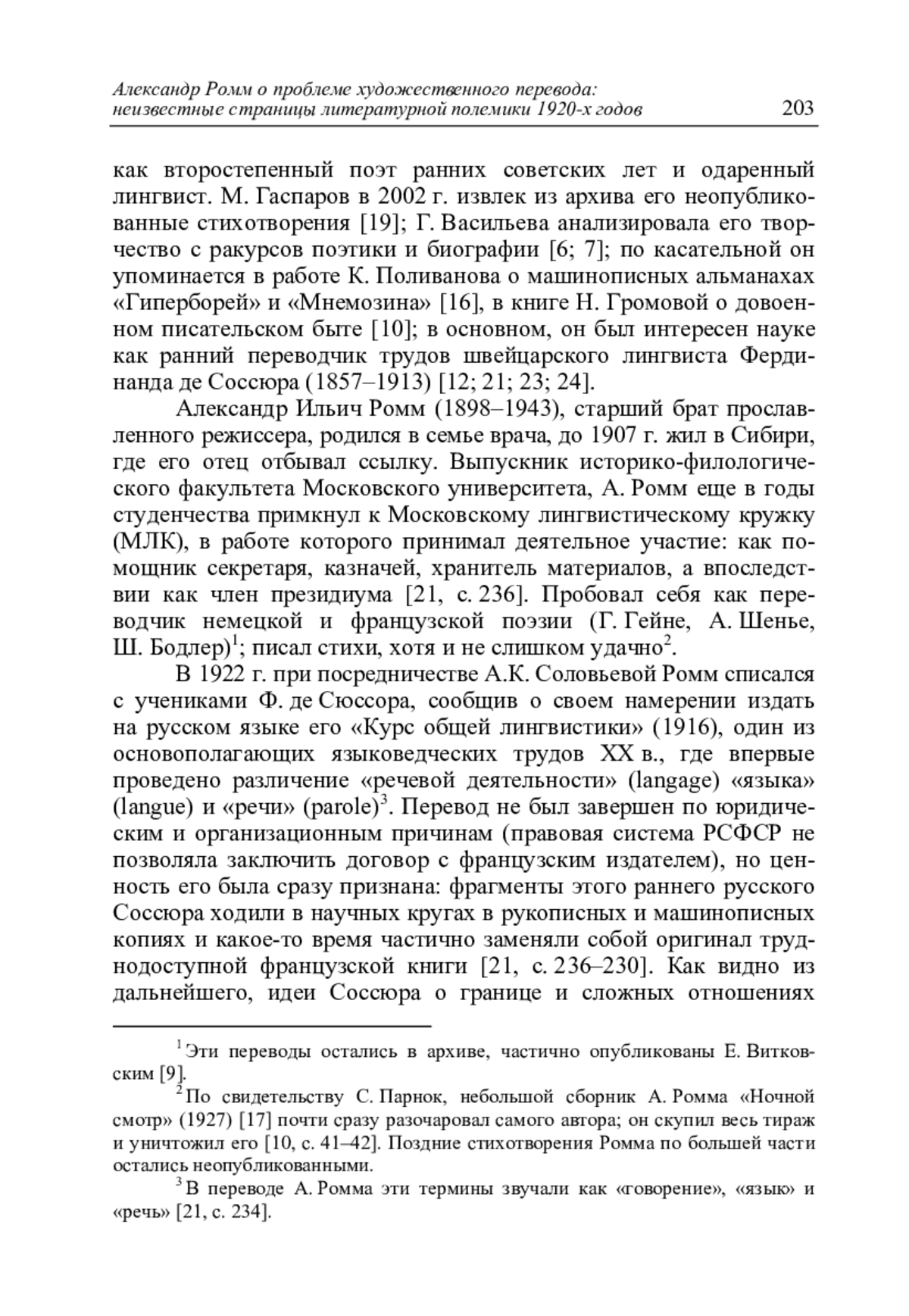 23. Reznik V. A Long Rendezvous: Aleksandr Romm’s Unpublished Works on Ferdinand de Saussure // Slavonic and East European Review. 2008. Vol. 86. No. 1. P. 1-25. DOI: 10.1353/see.2008.0056 EDN: ONNXKV