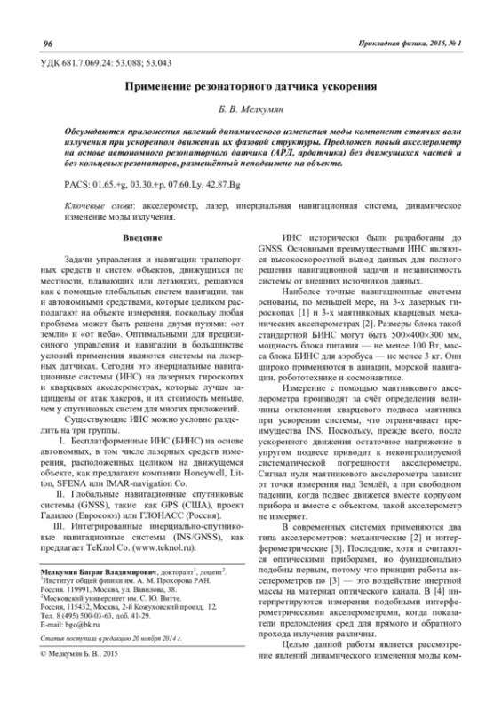 Мелкумян Б. В. Применение резонаторного датчика ускорения 96