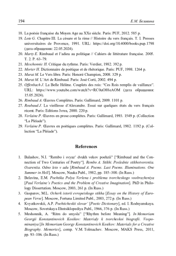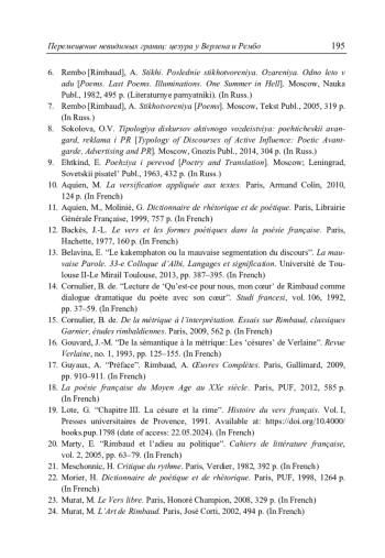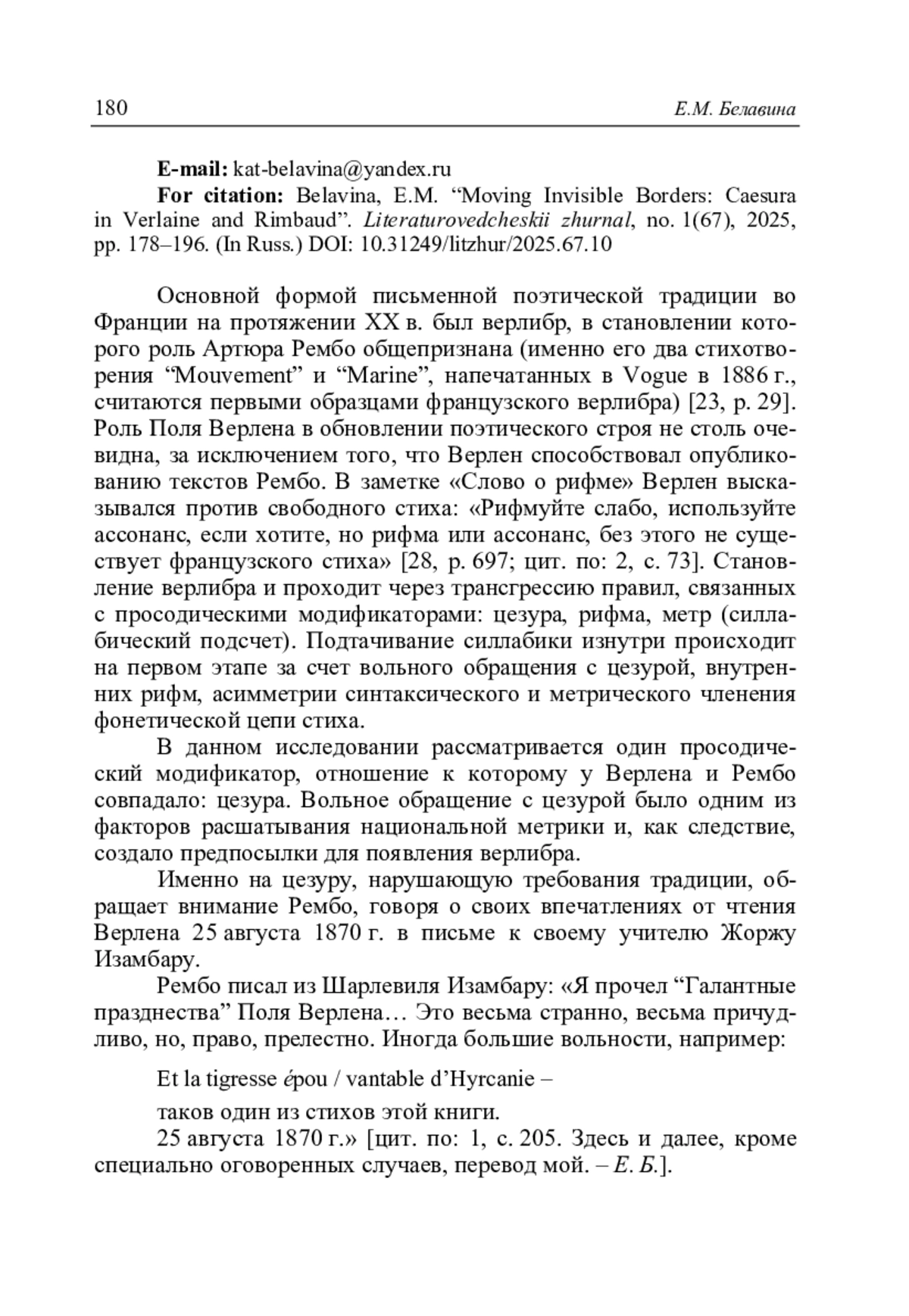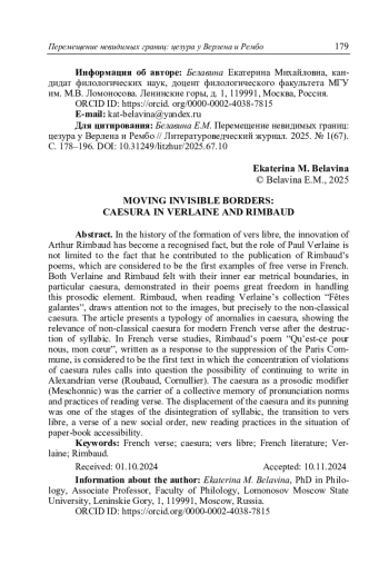Белавина Е.М. Перемещение невидимых границ: цезура у Верлена и Рембо // Литературоведческий журнал. 2025. No 1(67). С. 178–196.