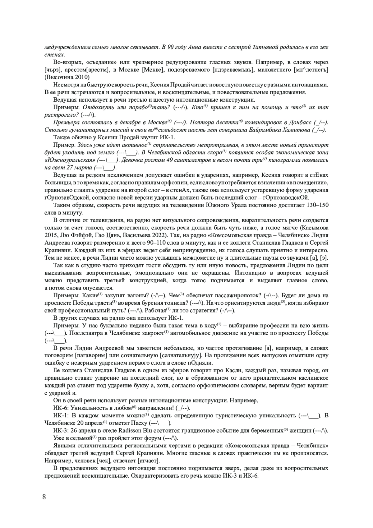 7. Лю Фэйфэй, Гао Цянь, Васильева В. В. Изучение ритмической организации современного новостного радиотекста (на материале текстов общедоступных российских радиостанций) // Филологические науки. Вопросы теории и практики. 2022. № 2. С. 626-633. EDN: XLKVSD
