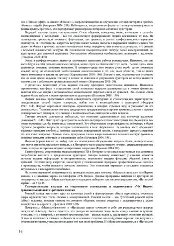 16. Эфендиев Т. Т. Ток-шоу отношения телевидения и общественности // Вестник Казанского государственного университета культуры и искусства. 2010. С. 159-162.