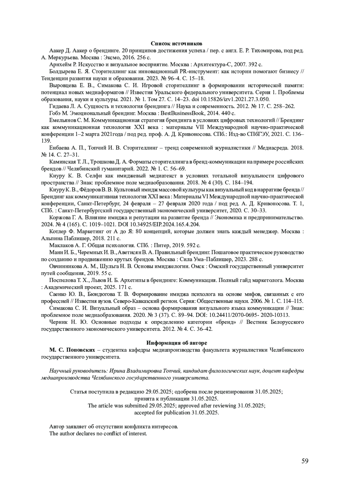8. Енбаева А. П., Топчий И. В. Сторителлинг - тренд современной журналистики // Медиасреда. 2018. № 14. С. 27-31. EDN: YOYZJJ