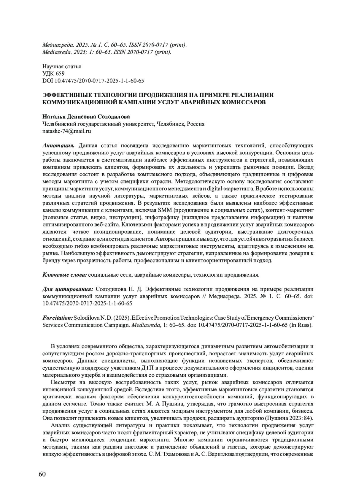 11. Пушина М.А. Специфика продвижения услуг в социальных сетях // Вестник магистратуры. 2023. № 8 (143). С. 84. EDN: IDKJSW