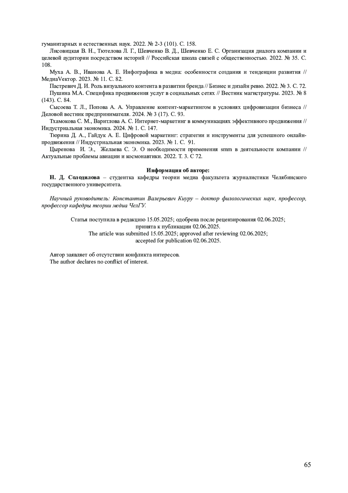 5. Ежова Е. Н. Визуальный пользовательский контент в структуре современной медиакоммуникации // Российская школа связей с общественностью. 2021. № 35. С. 48. EDN: DXLPDZ