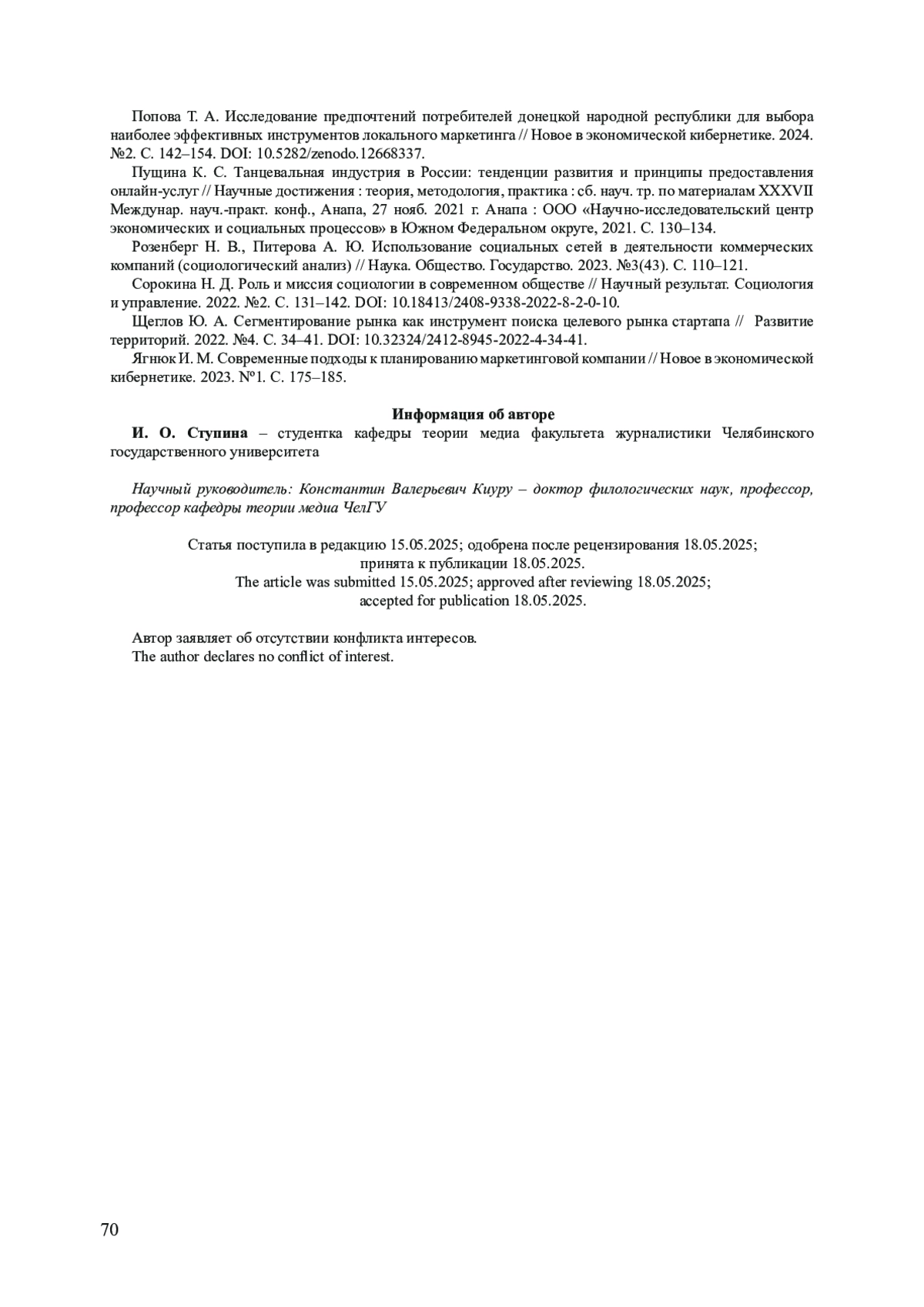 12. Розенберг Н. В., Питерова А. Ю. Использование социальных сетей в деятельности коммерческих компаний (социологический анализ) // Наука. Общество. Государство. 2023. № 3(43). C. 110-121. EDN: WCGUQX