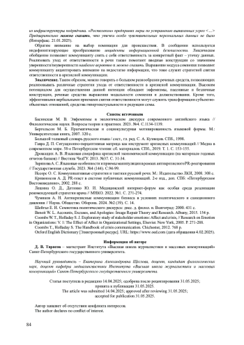 6. Зарянова А. С. Языковые особенности и приемы манипуляции в рамках антикризисного PR-реагирования // Государственная служба. 2023. №4 (144). С.94-99. EDN: VLDTWG