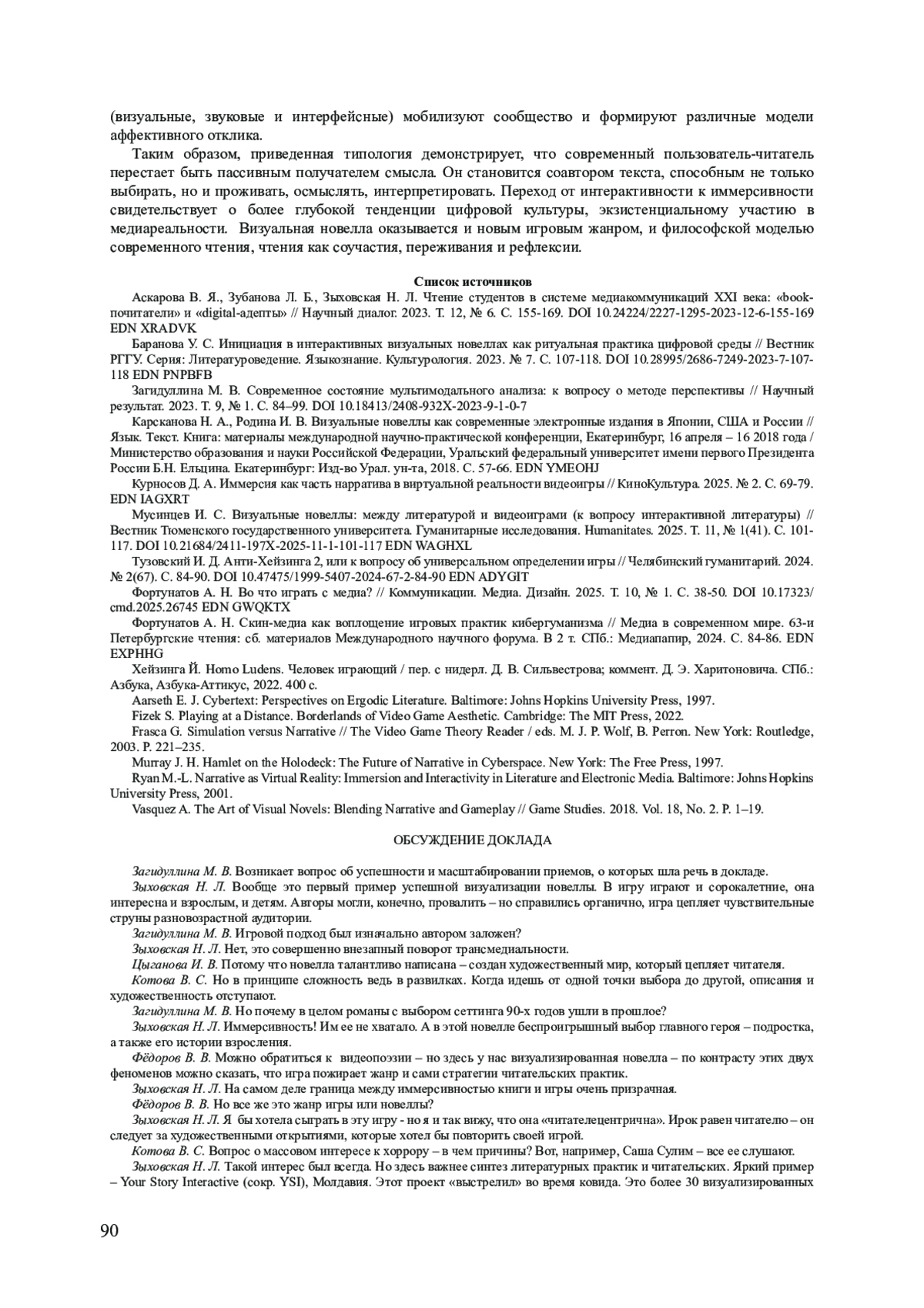 6. Мусинцев И. С. Визуальные новеллы: между литературой и видеоиграми (к вопросу интерактивной литературы) // Вестник Тюменского государственного университета. Гуманитарные исследования. Humanitates. 2025. Т. 11, № 1(41). С. 101-117. DOI 10.21684/2411-197X-2025-11-1-101-117 EDN WAGHXL.