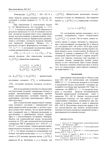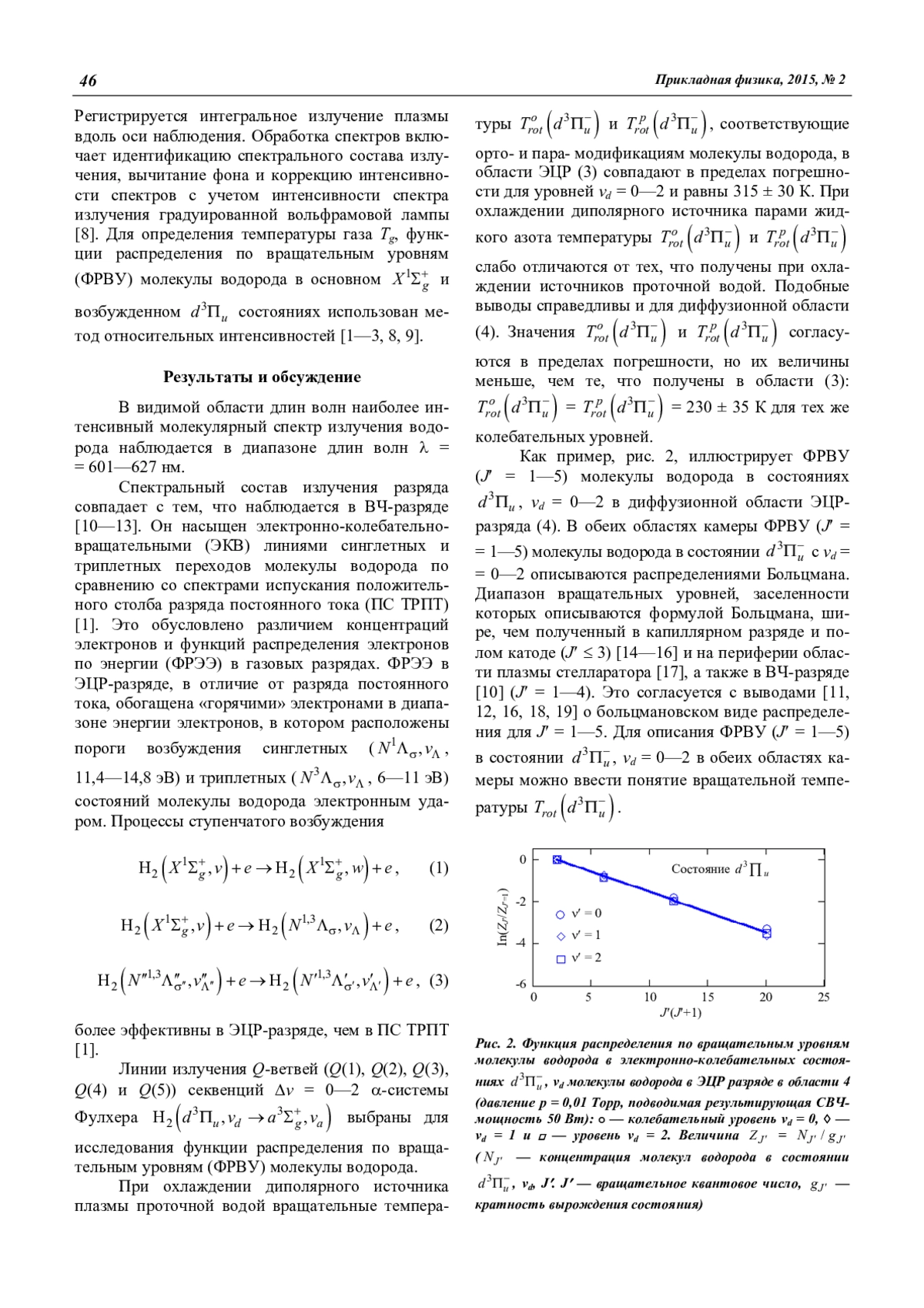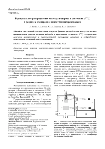 Bechu S., Lacoste A., Лебедев Ю. А., Шахатов В. А. Вращательное распределение молекул водорода в состоянии в разряде с электронно-циклотронным резонансом 45