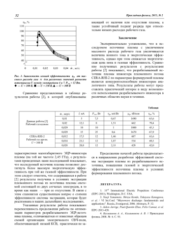 Балмашнов А. А., Бутко Н. Б., Калашников А. В., Калашников В. В., Степина С. П., Умнов А. М. Энергетическая и газовая эффективности формирования ЭЦР-плазмы в коаксиальном резонаторе со спиральной волноводной структурой 50