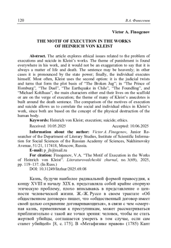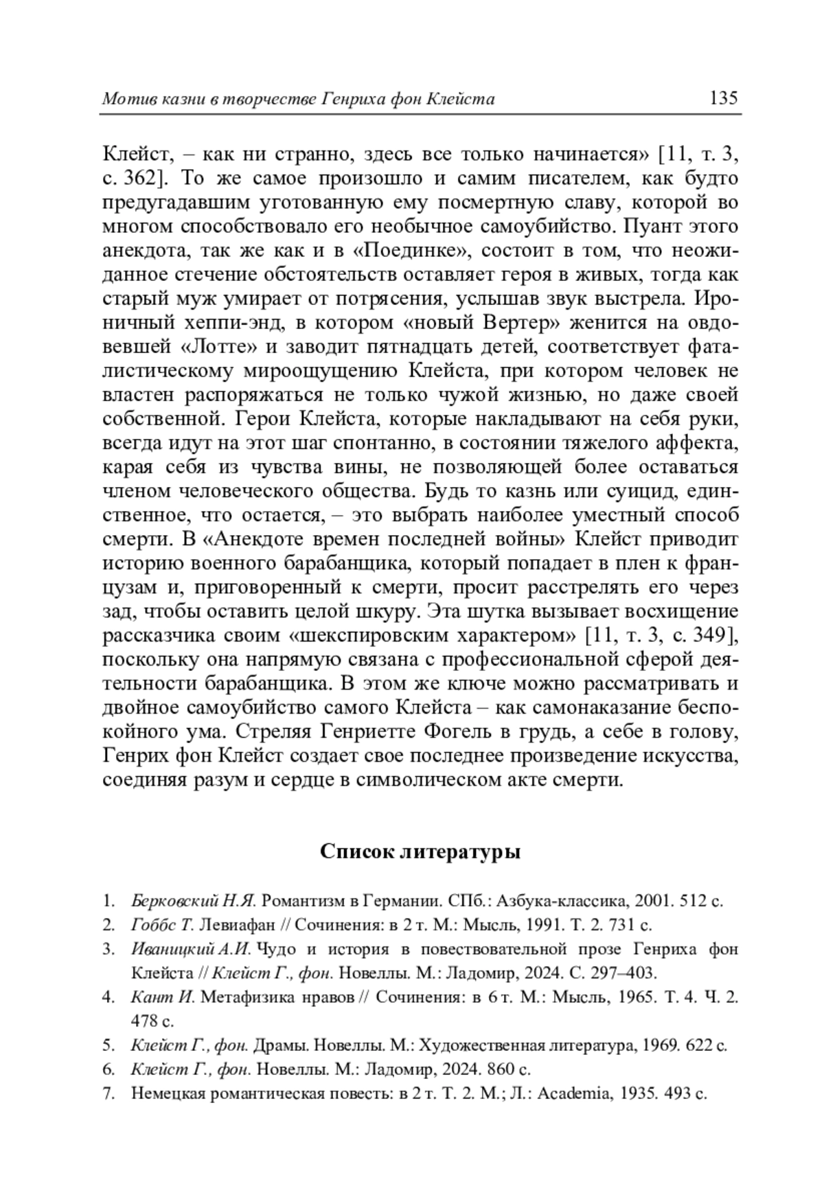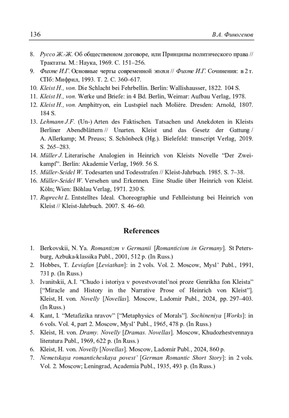 Финогенов В.А. Мотив казни в творчестве Генриха фон Клейста // Литературоведческий журнал. 2025. No 3(69). С. 119–137.