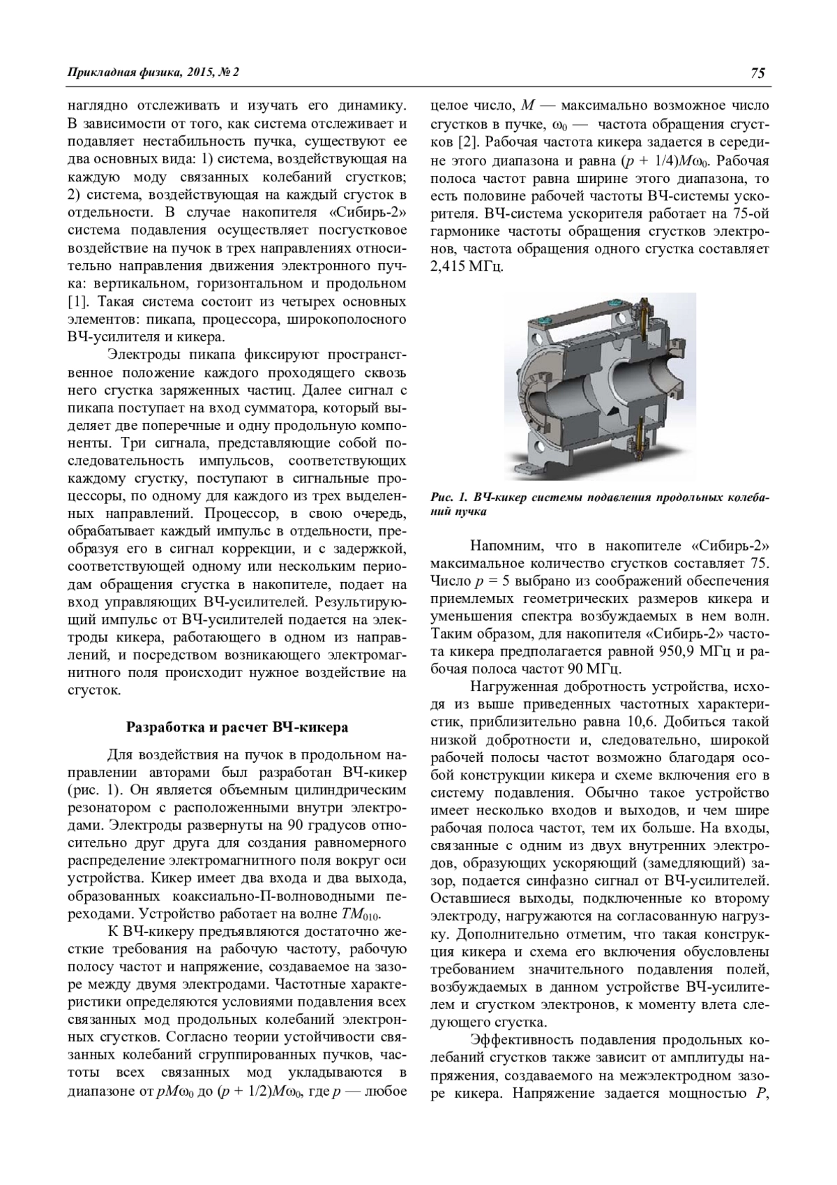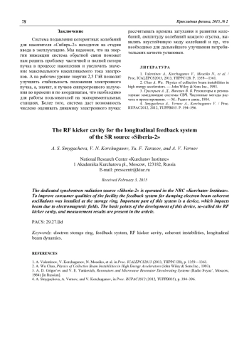 Смыгачева A. C., Корчуганов В. Н., Тарасов Ю. Ф., Вернов А. В. ВЧ-кикер системы подавления продольных колебаний пучка для источника синхротронного излучения 74