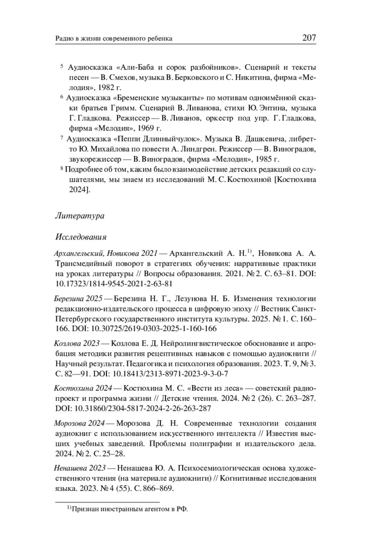 4. Костюхина М. С. “Вести из леса” - советский радиопроект и программа жизни // Детские чтения. 2024. № 2 (26). С. 263-287. DOI: 10.31860/2304-5817-2024-2-26-263-287 EDN: MEVAQU