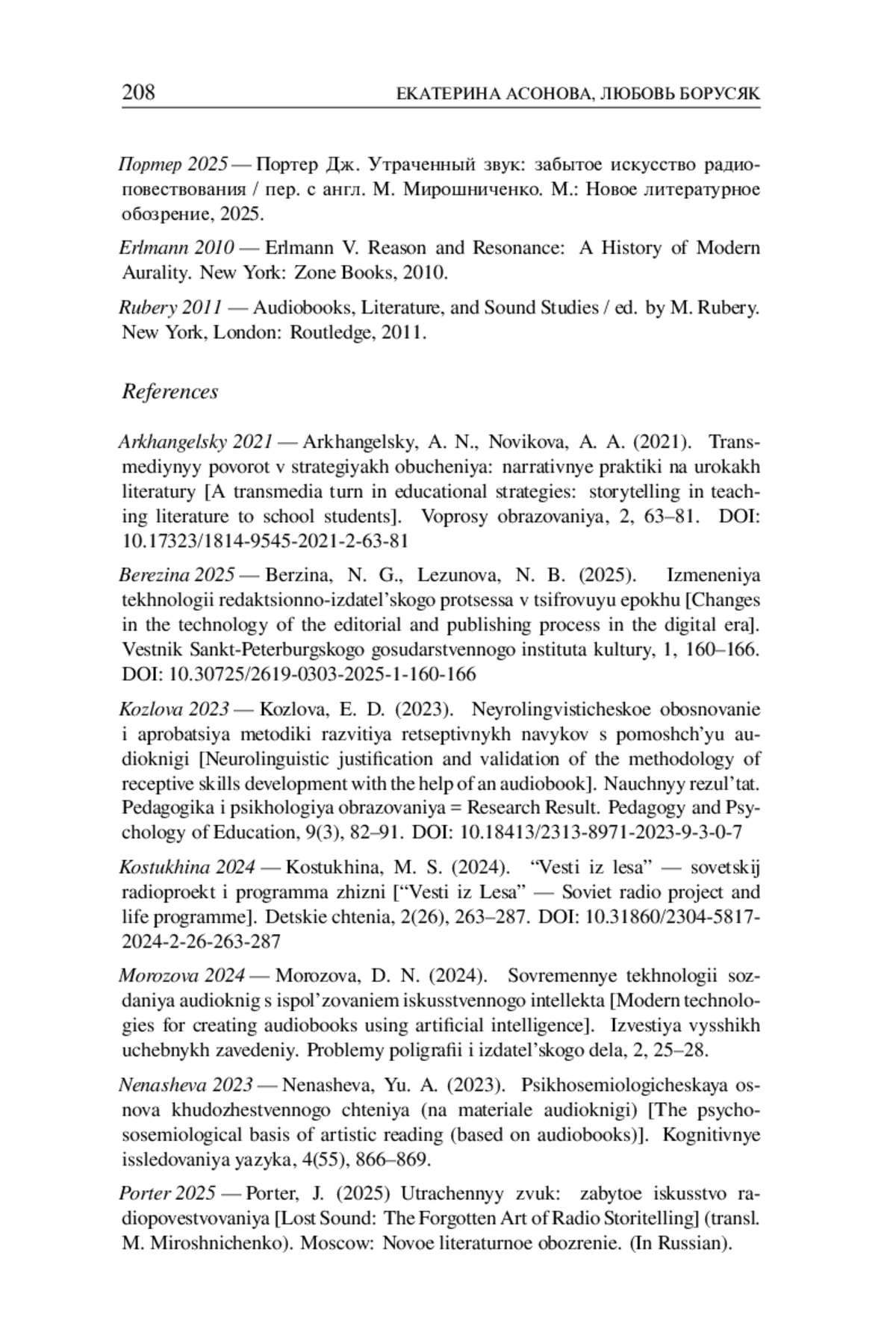 7. Портер Дж. Утраченный звук: забытое искусство радиоповествования / пер. с англ. М. Мирошниченко. М.: Новое литературное обозрение, 2025.