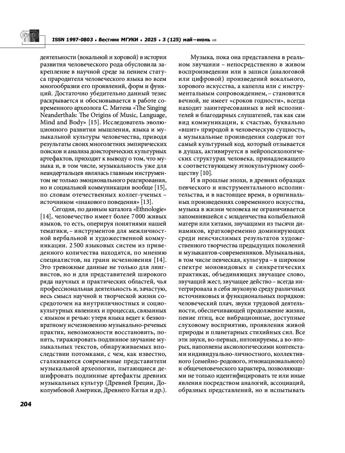 15. Mithen S. J. The Singing Neanderthals: The Origins of Music, Language, Mind and Body Cambridge, Massachusetts: Harvard University Press, 2006. Weidenfeld & Nicolson, London. 374 p.