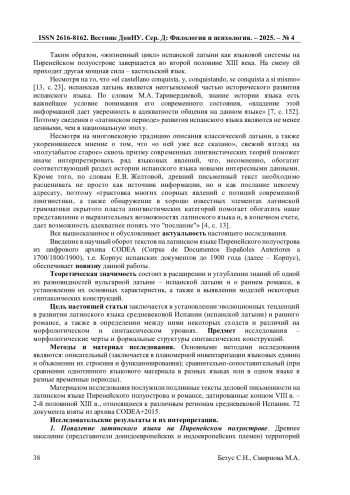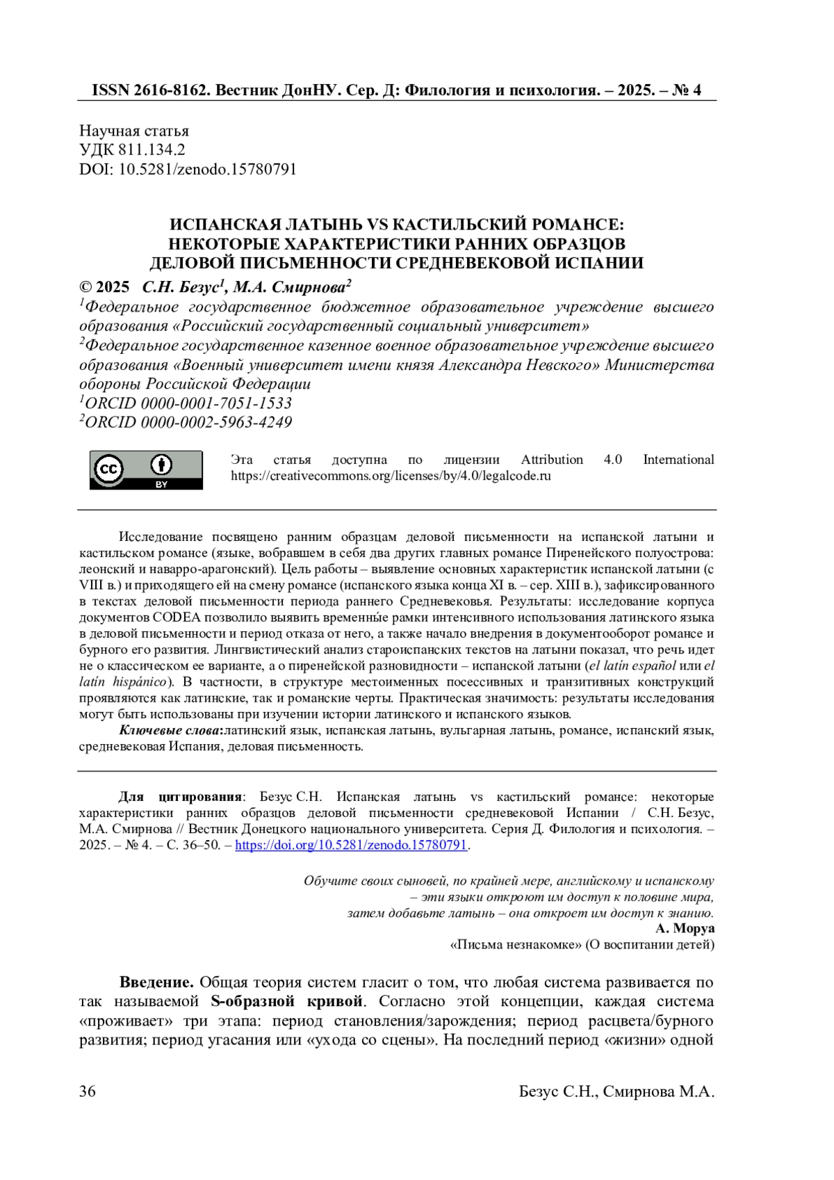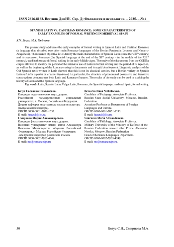 Цель работы - выявление основных характеристик испанской латыни (с VIII в.) и приходящего ей на смену романсе (испанского языка конца XI в. - сер. XIII в.), зафиксированного в текстах деловой письменности периода раннего Средневековья.