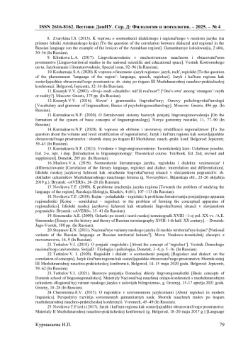 21. Теркулов В.И. О понятии “региолект” / В.И. Теркулов // Вестник Донецкого национального университета. Серия Д: Филология и психология. - Донецк, 2018. - № 3-4. - С. 5-16.