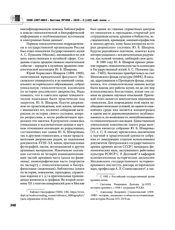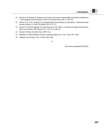 3. Бычкова М. Е., Смирнов М. И. Генеалогия в России: История и перспективы. Москва: Территория, 2004. 272 с. EDN: SNZCVF