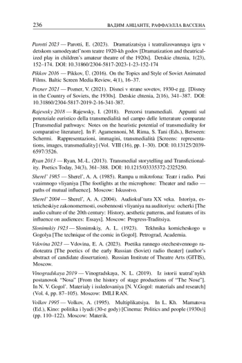 11. Паротти Э. Драматизация и театрализованная игра в детском самодеятельном театре 1920-х годов // Детские чтения. 2023. № 1 (23). С. 152-174. DOI: 10.31860/2304-5817-2023-1-23-152-174 EDN: MKKPGD