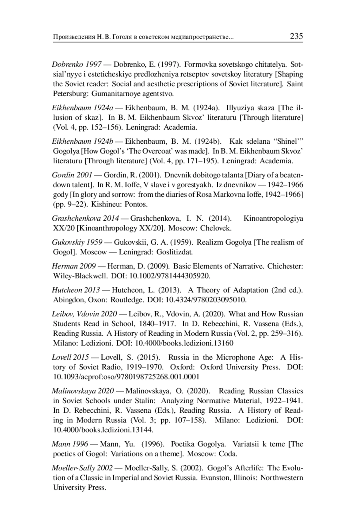 25. Moeller-Sally S. Gogol’s Afterlife: The Evolution of a Classic in Imperial and Soviet Russia. Evanston, Illinois: Northwestern University Press, 2002.