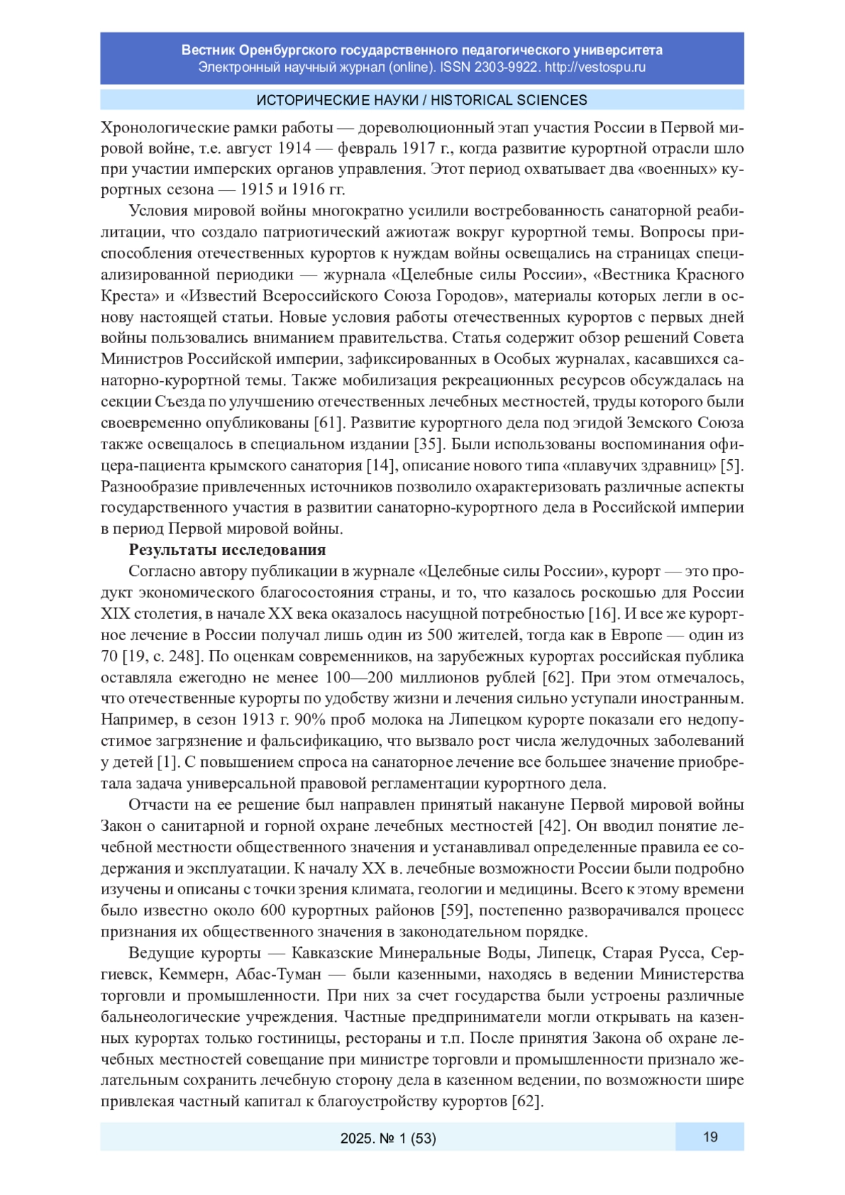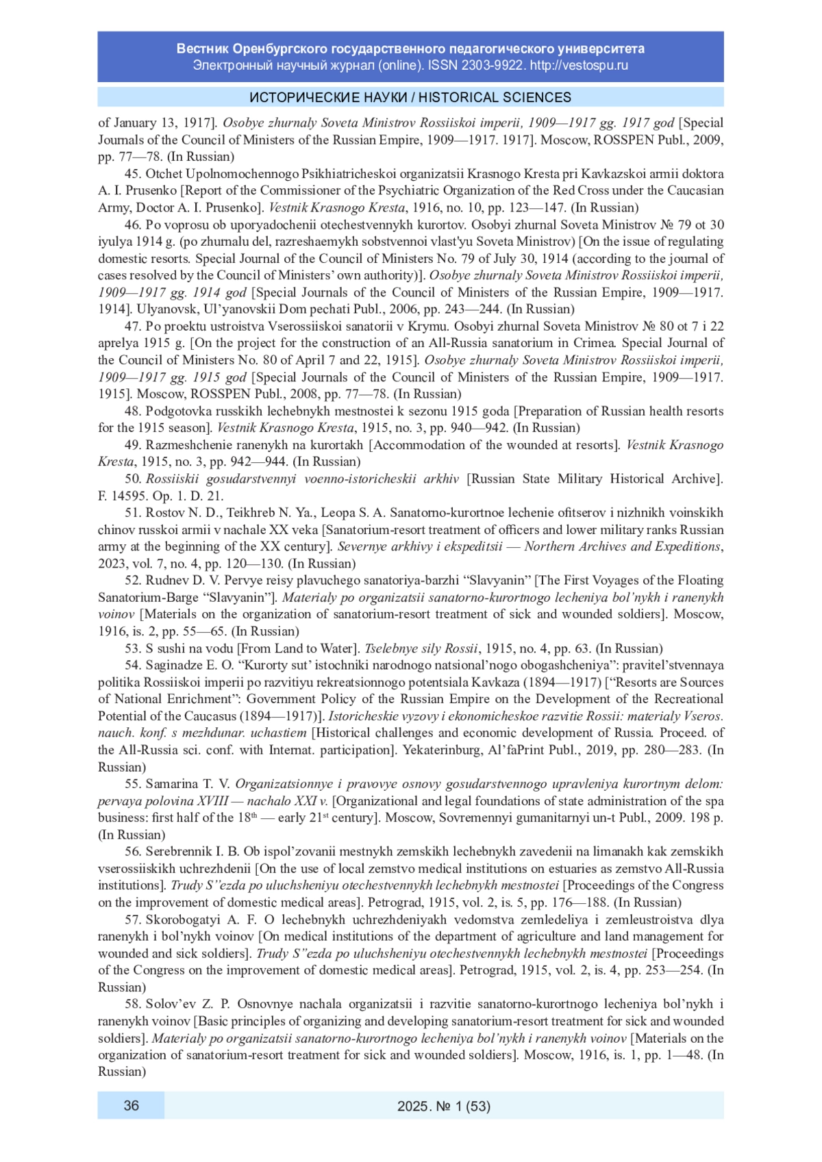 54. Сагинадзе Э. О. “Курорты суть источники народного национального обогащения”: правительственная политика Российской империи по развитию рекреационного потенциала Кавказа (1894-1917) // Исторические вызовы и экономическое развитие России: материалы Всерос. науч. конф. с междунар. участием. Екатеринбург: АльфаПринт, 2019. С. 280-283. EDN: ISPUZM