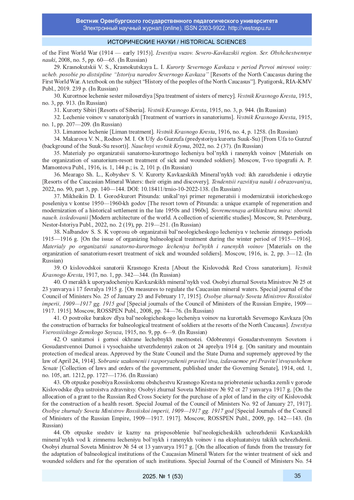 29. Краснокутский В. С., Краснокутская Л. И. Курорты Северного Кавказа в период Первой мировой войны: учеб. пособие по дисциплине “История народов Северного Кавказа”. Пятигорск: РИА-КМВ, 2019. 239 с.