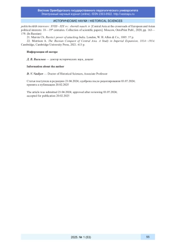 22. Morrison A. The Russian Conquest of Central Asia. A Study in Imperial Expansion, 1814-1914. Cambridge: Cambridge University Press, 2021. 613 р.