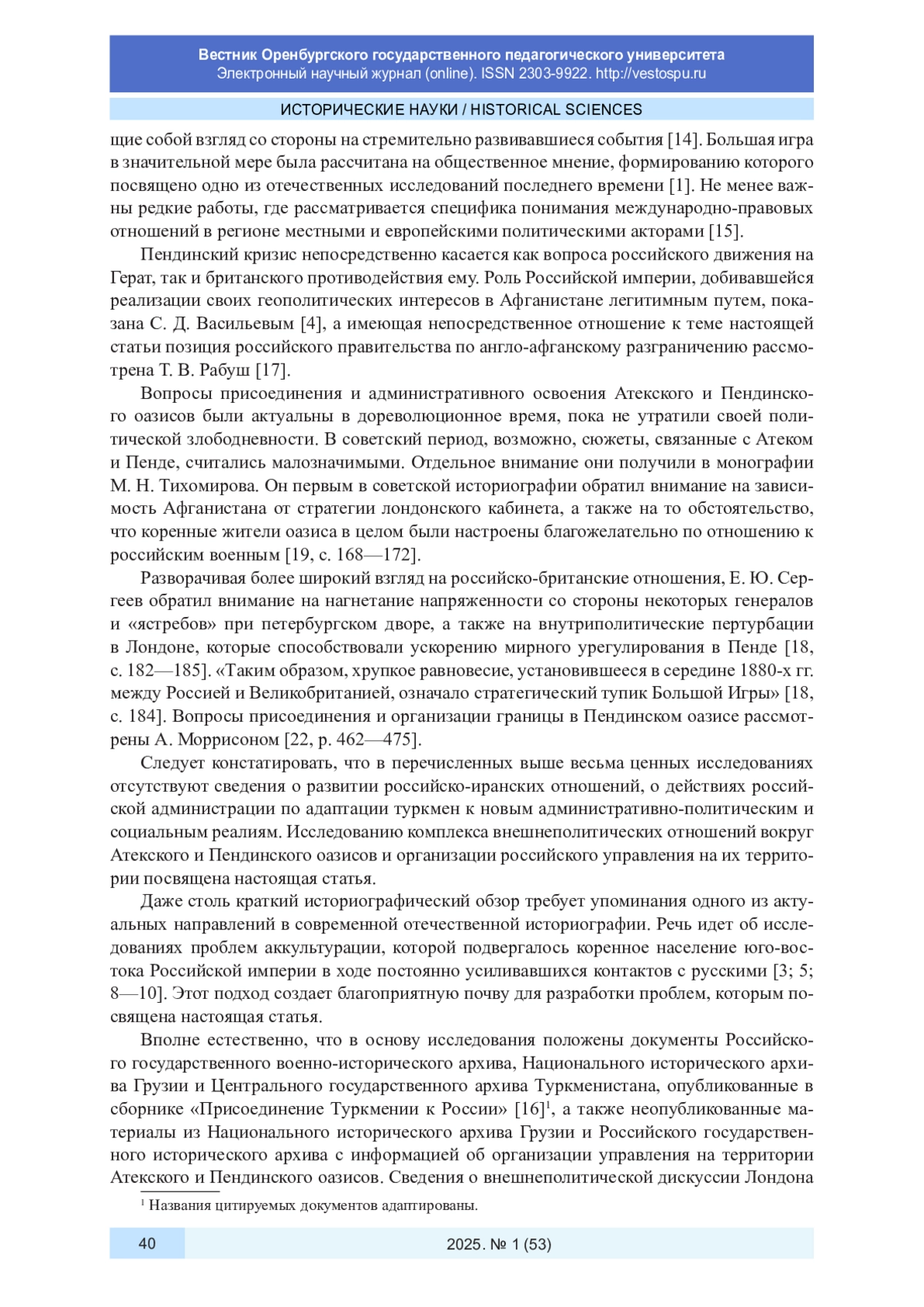 20. Удербаева С. К., Сагатов А. М. Отражение англо-русского соперничества в Центральной Азии в конце XIX - начале XX в. в научной литературе // Центральная Азия на перекрестке европейских и азиатских политических интересов: XVIII-XIX вв.: сб. науч. тр. М.: ОнтоПринт, 2020. С. 163-179. EDN: RJFFPN