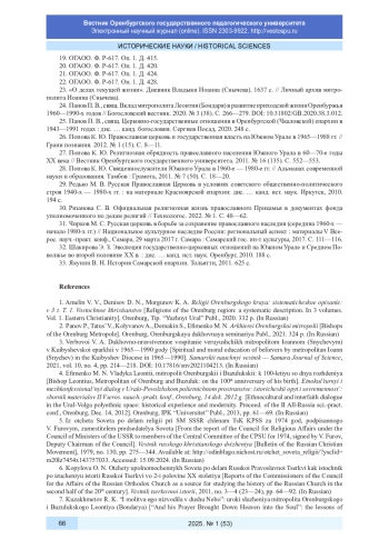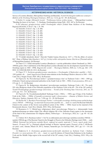 25. Панов П. В., свящ. Церковно-государственные отношения в Оренбургской (Чкаловской) епархии в 1943-1991 годах: дис. … канд. богословия. Сергиев Посад, 2020. 248 с.