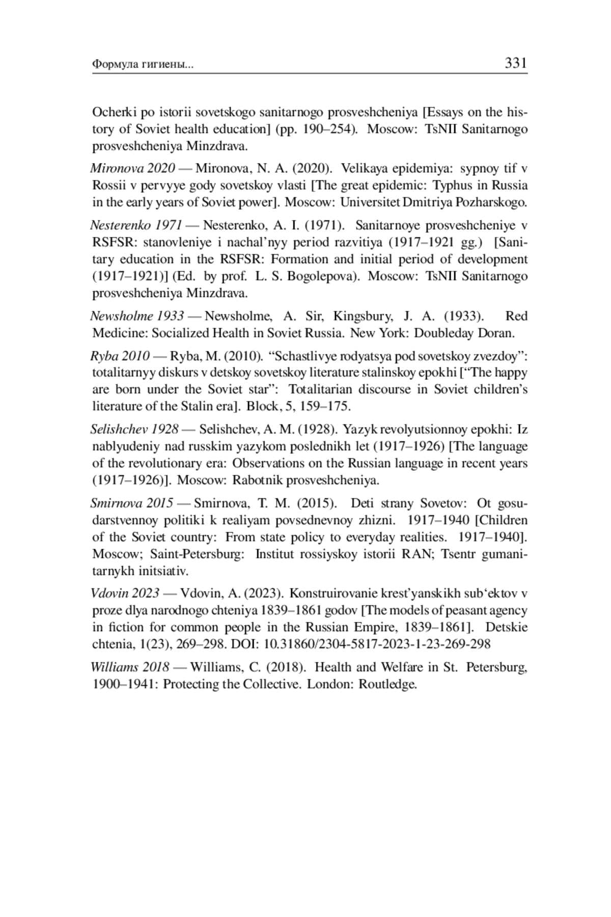 11. Миронова Н. А. Великая эпидемия: сыпной тиф в России в первые годы советской власти. М.: Университет Дмитрия Пожарского, 2020.