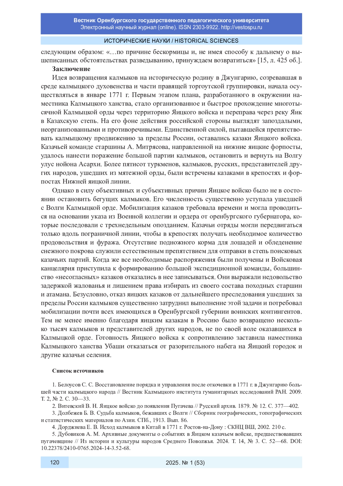 5. Дубовиков А. М. Архивные документы о событиях в Яицком казачьем войске, предшествовавших пугачевщине // Из истории и культуры народов Среднего Поволжья. 2024. Т. 14, № 3. С. 52-68. DOI: 10.22378/2410-0765.2024-14-3.52-68 EDN: VFOVOZ