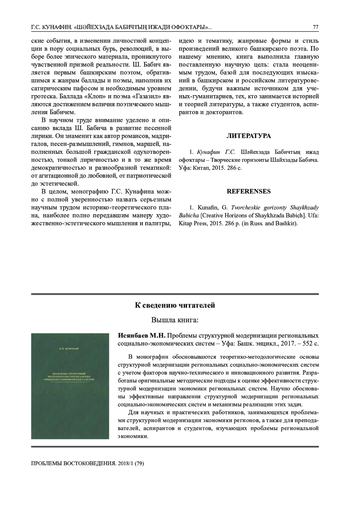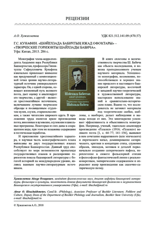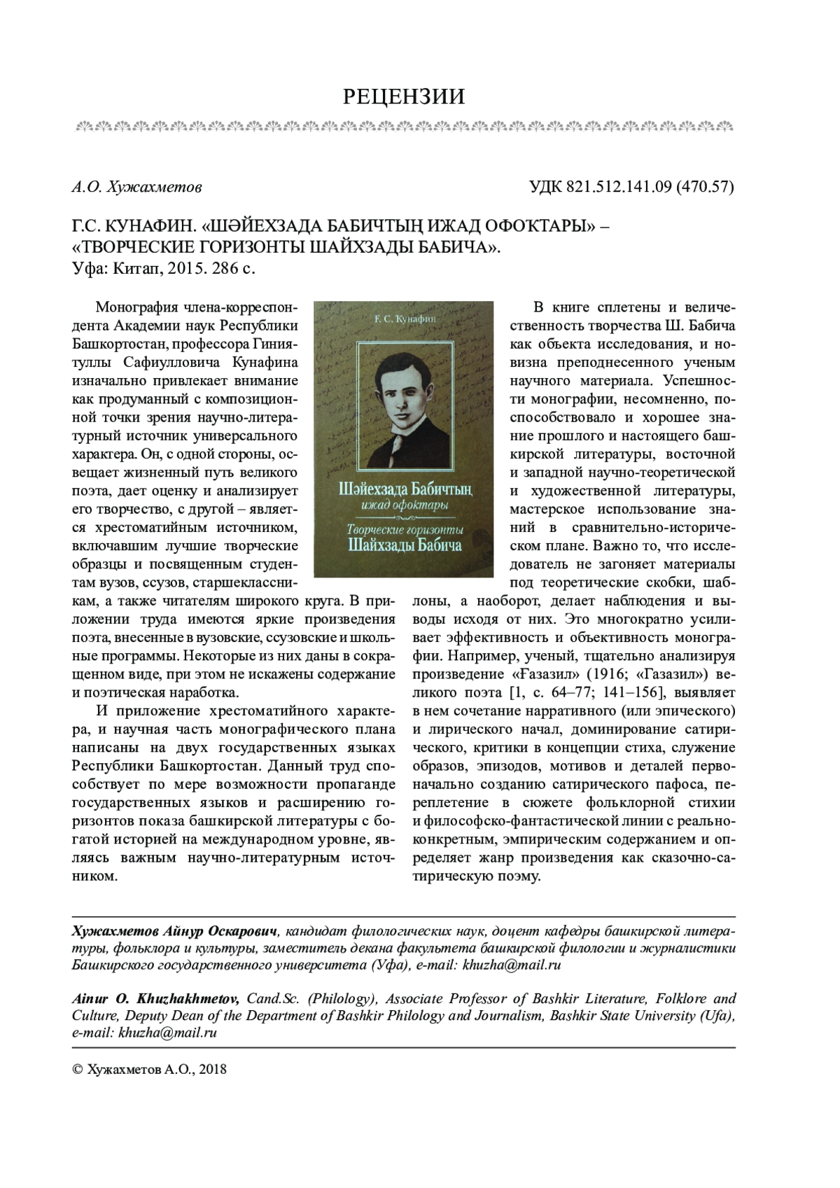 1. Кунафин Г.С. Шәйехзада Бабичтың ижад офоҡтары - Творческие горизонты Шайхзады Бабича. Уфа: Китап, 2015. 286 с.