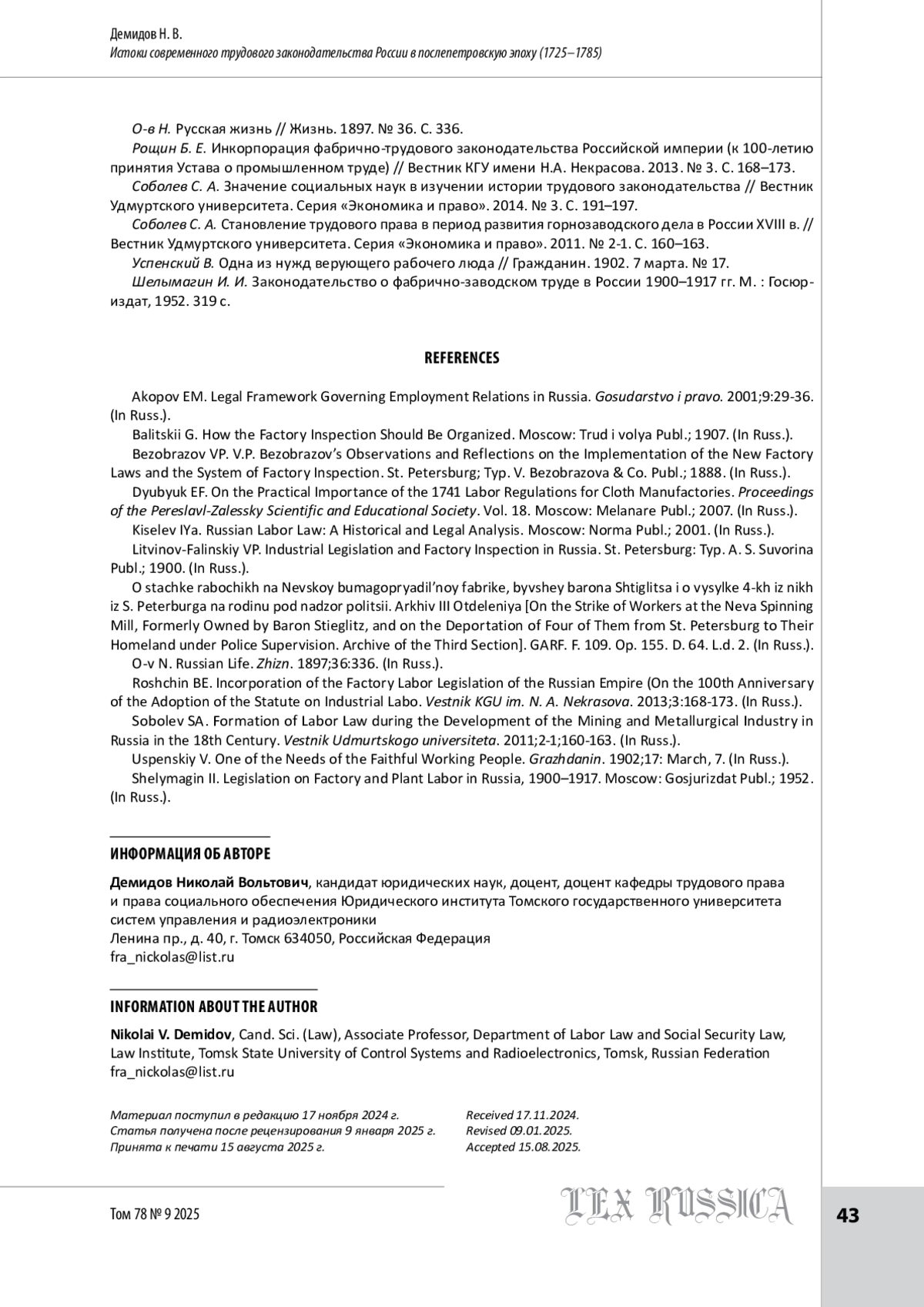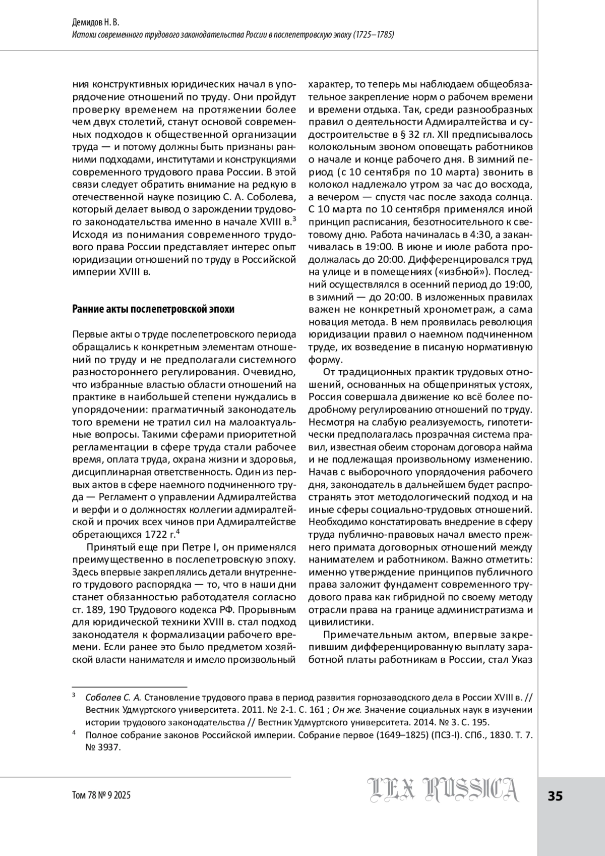 11. Соболев С. А. Становление трудового права в период развития горнозаводского дела в России XVIII в. // Вестник Удмуртского университета. Серия «Экономика и право». 2011. № 2-1. С. 160-163.