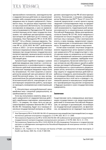 8. Zubarev S. M., Troshev D. B. The Concept and Essence of Public Law Enforcement of State Sovereignty // Kutafin Law Review. 2024. No. 11 (3). P. 569-594.