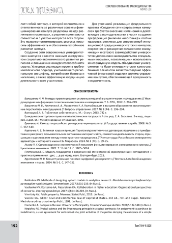 7. Лысов П. Г. Организационно-экономический механизм функционирования межвузовского кампуса // Креативная экономика. 2022. Т. 16. № 12. С. 5005-5024.