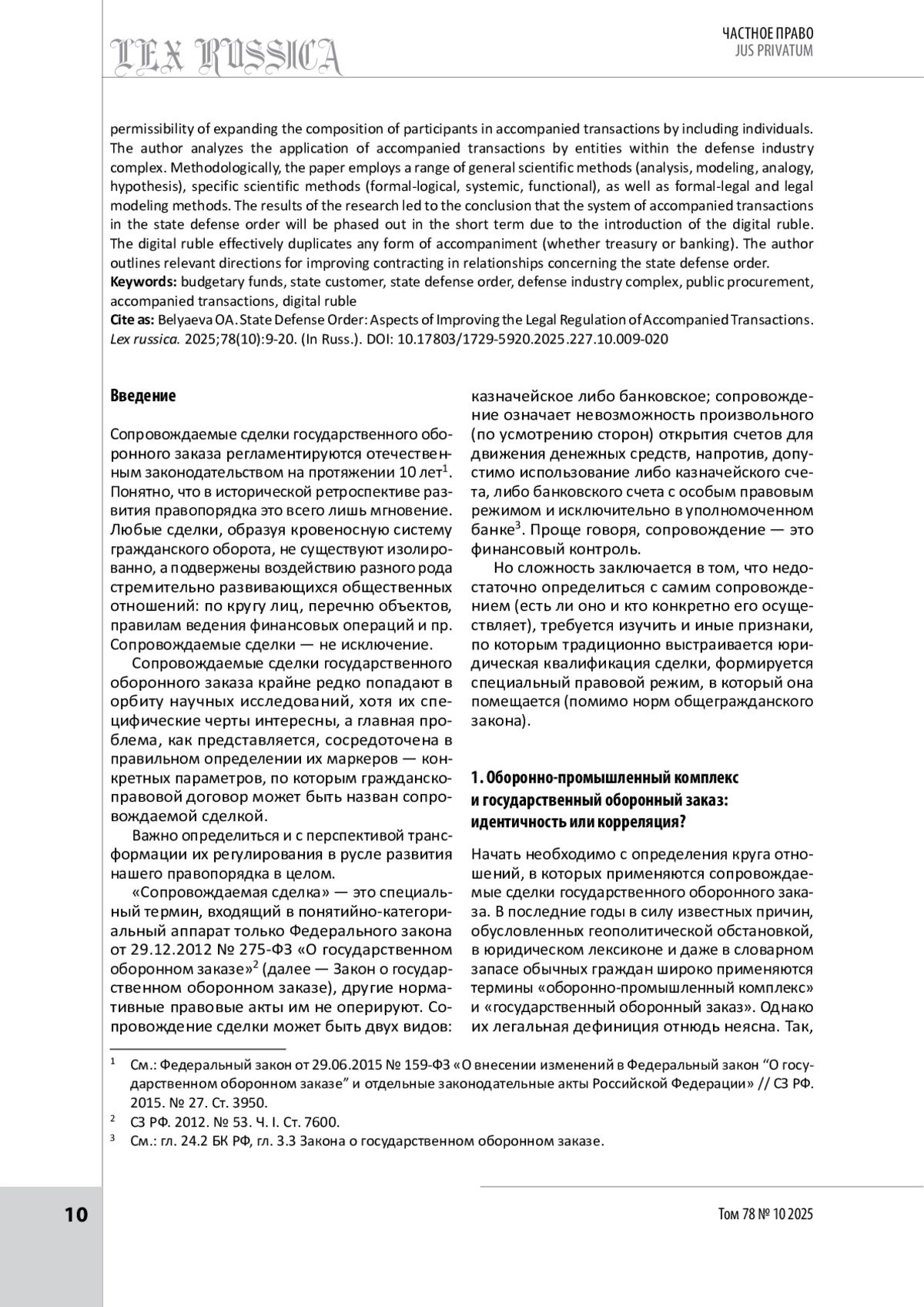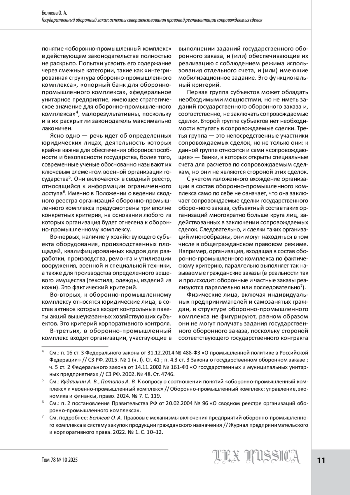 3. Беляева О. А. Правовые механизмы включения предприятий оборонно-промышленного комплекса в систему закупок продукции гражданского назначения // Журнал предпринимательского и корпоративного права. 2022. № 1.
