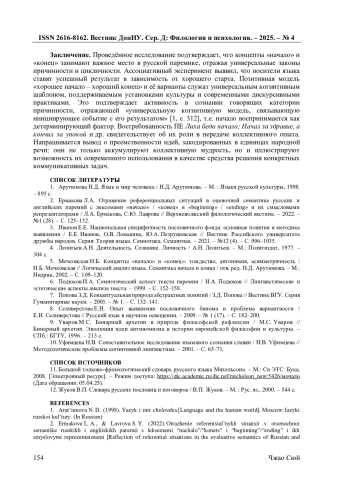 5. Мечковская Н.Б. Концепты “начало” и “конец”: тождество, антонимия, асимметричность / Н.Б. Мечковская // Логический анализ языка. Семантика начала и конца / отв. ред. Н.Д. Арутюнова. - М.: Индрик, 2002. - С. 109-120.