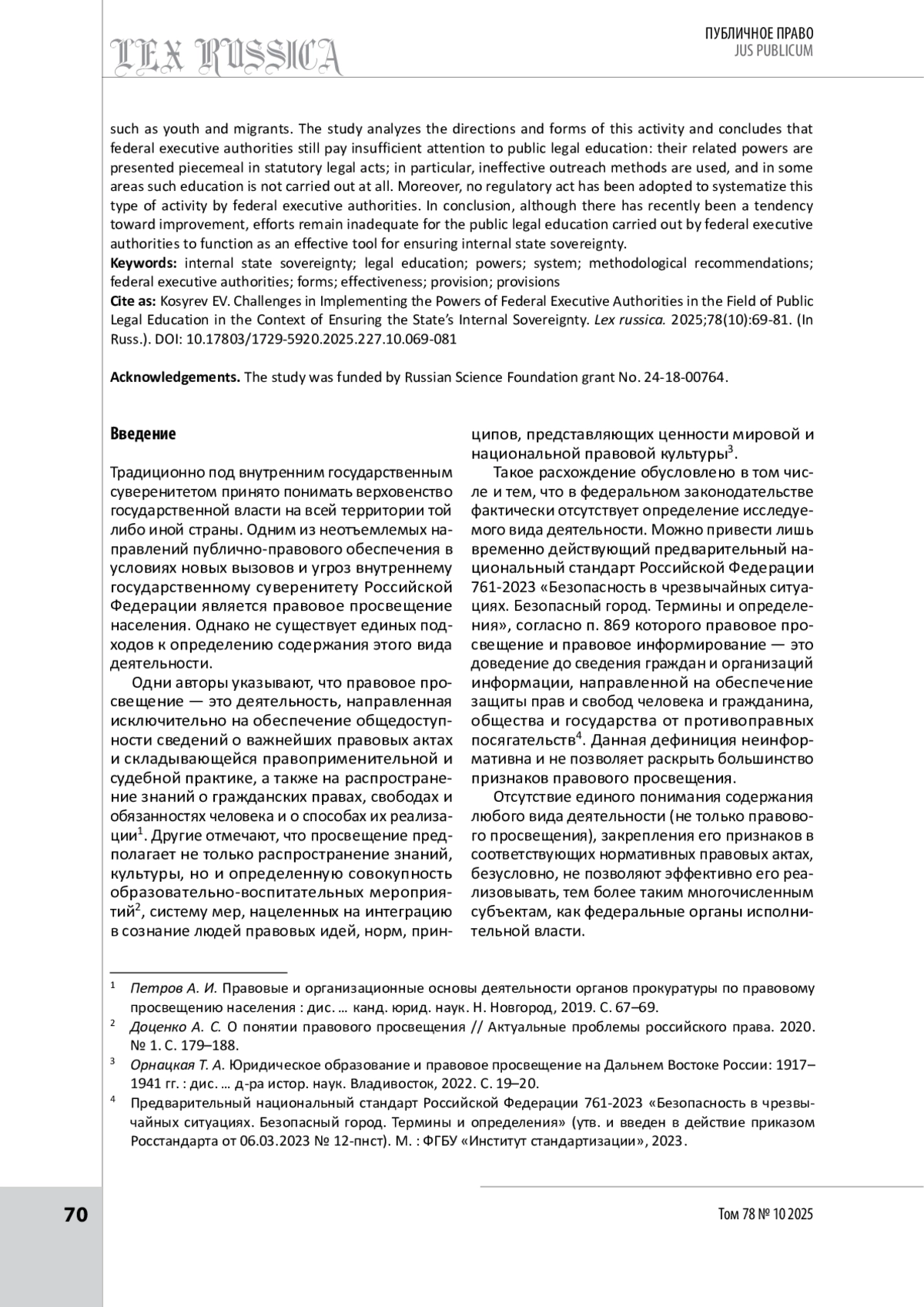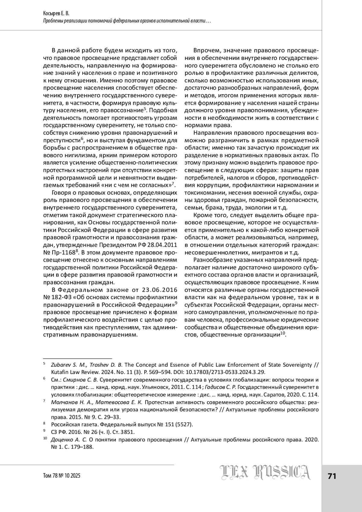7. Доценко А. С. О понятии правового просвещения // Актуальные проблемы российского права. 2020. № 1. С. 179-188.