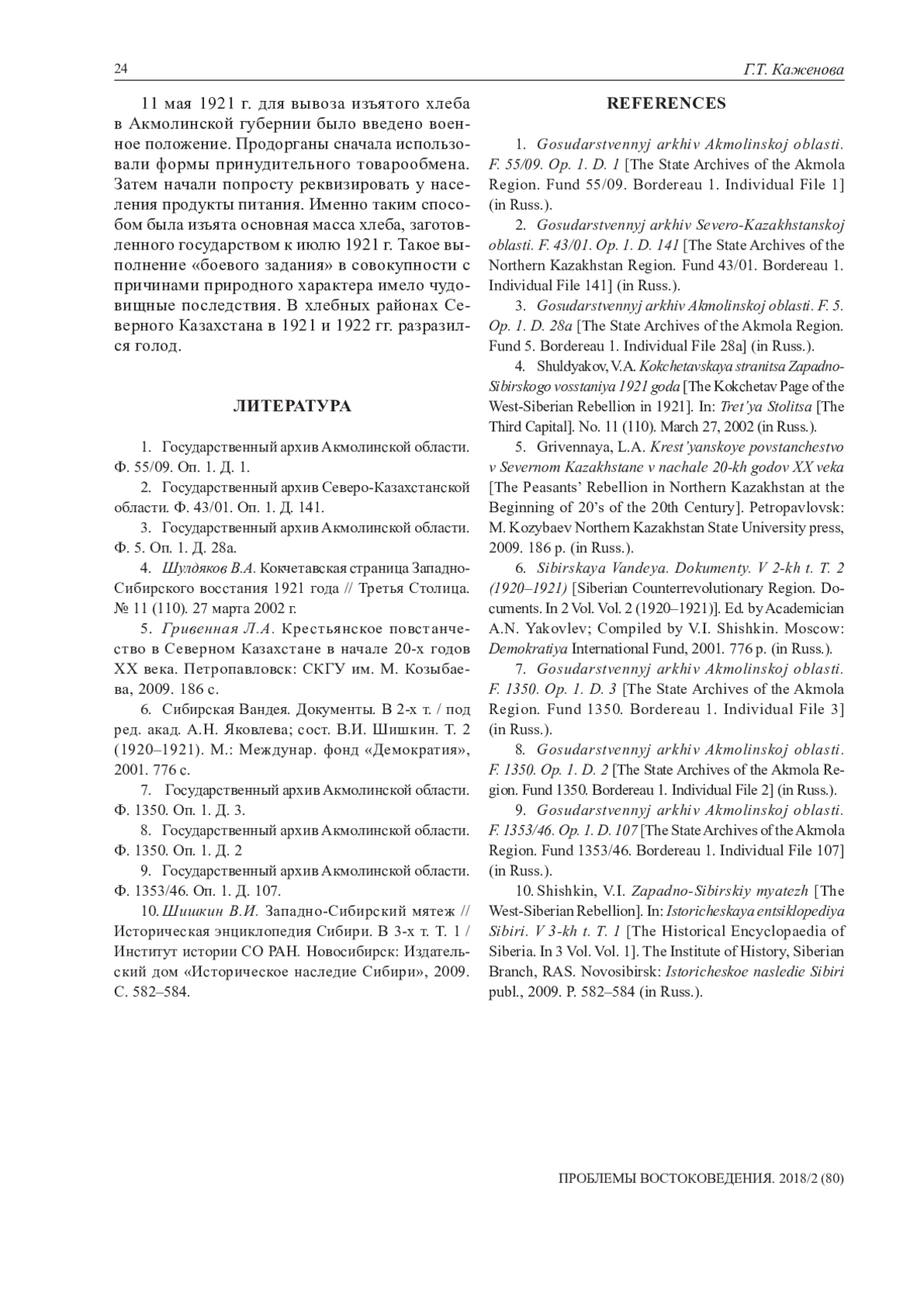 5. Гривенная Л.А. Крестьянское повстанчество в Северном Казахстане в начале 20-х годов ХХ века. Петропавловск: СКГУ им. М. Козыбаева, 2009. 186 с.